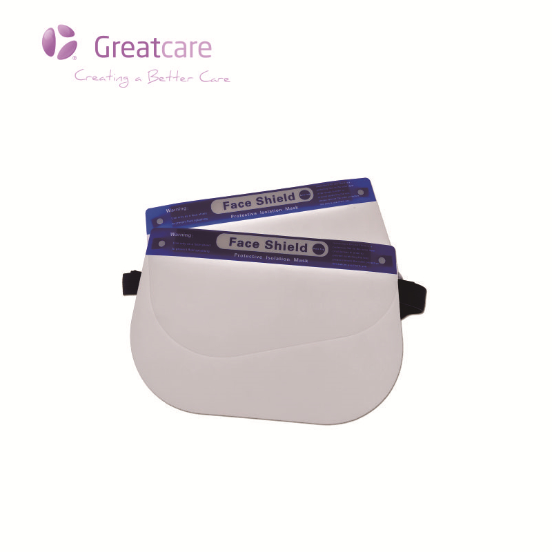 Greatcare Face Shield-leverandør i Kina med god pris. Face Shields er personlig verneutstyr som brukes for å beskytte ansiktsområdet og tilhørende slimhinner (øyne, nese, munn, ører) mot sprut, spray og sprut av kroppsvæsker.